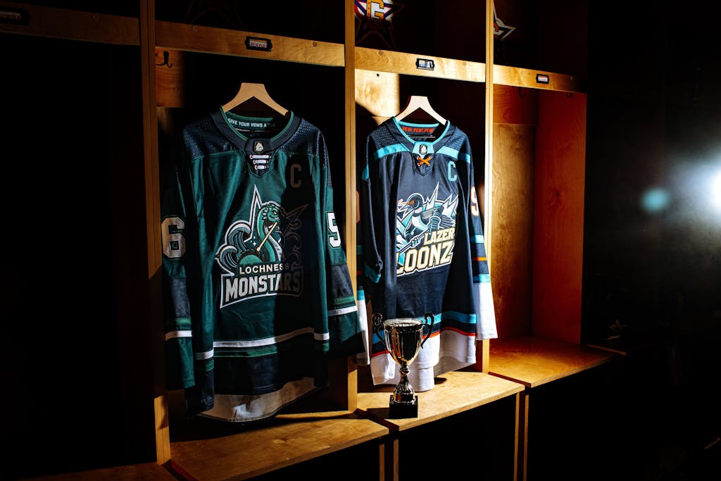 - Select patterns, colors, and logos within the jersey builder