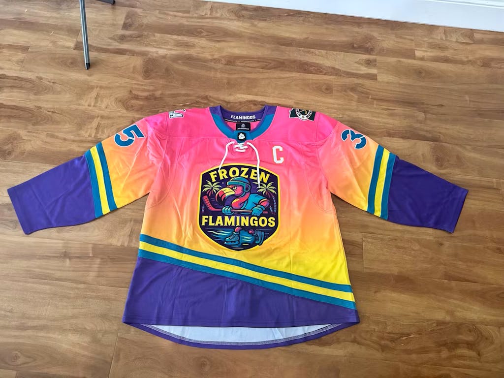 Get your team ready to take on any opponent with our premium, fully customizable hockey jerseys. Use our intuitive jersey builder to customize your jerseys and socks just how you want them, and easily input your team roster.